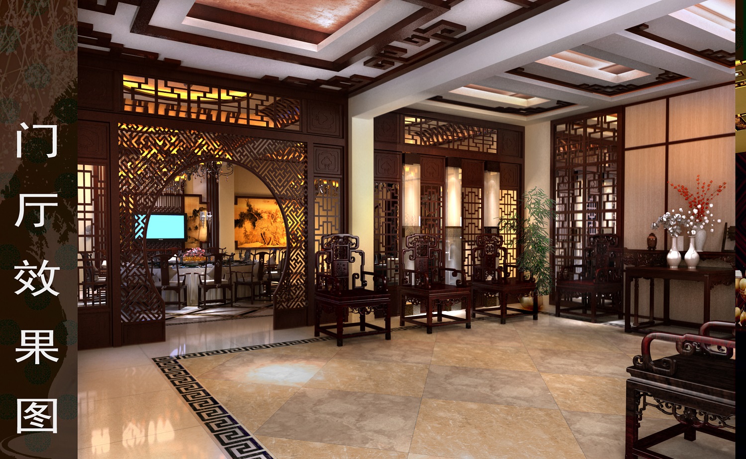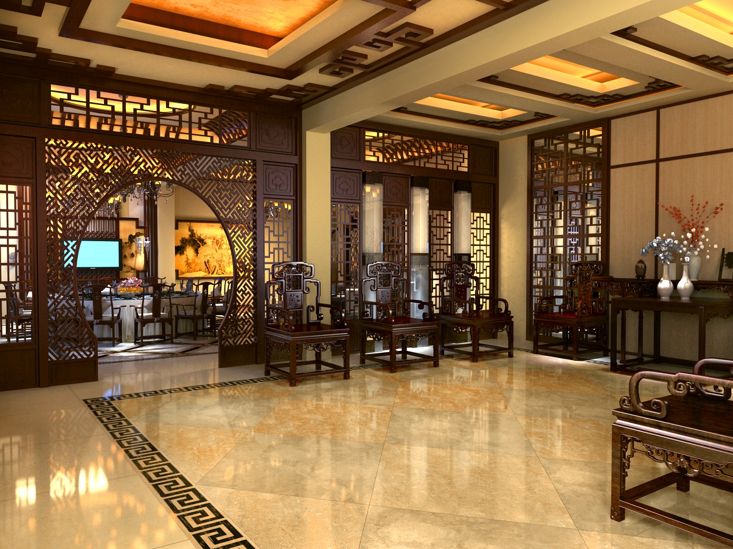 呈现原汁原味的中式风格,设计师将许多中式元素运用的淋漓尽致。水墨画背景的电视背景墙,做工精细的古典家具,精美雕花的门窗,以及深沉典雅的家居基调,无不让人沉迷于这浓浓的中式风情。