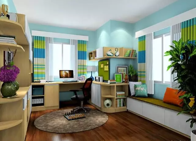 2、书房——利用墙角柱子做个转角书柜