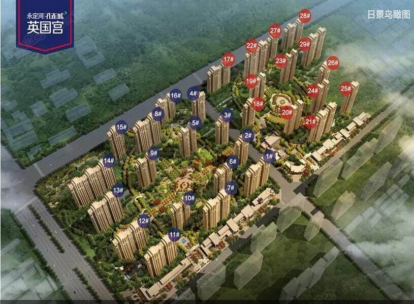 永定河孔雀城英国宫·普罗旺斯花园,共规划有16栋住宅,共1900户,项目由10栋高层和6栋小高层产品组成 永定河孔雀城英国宫·唐顿公馆楼栋均为14-28层和小高9层,共4024套。 永定河孔雀城英国宫·枫丹白露花园高层均为18-28层、小高层9-11层,总户数为3336套。 永定河孔雀城英国宫凡尔赛花园:高层5栋18层、14栋28层。